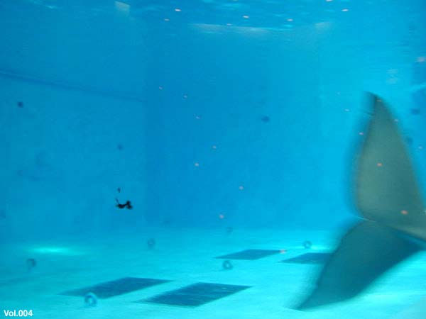 で撮影。白イルカ「べルーガ」のプールにて。黒く写っているのは糞だと思う。